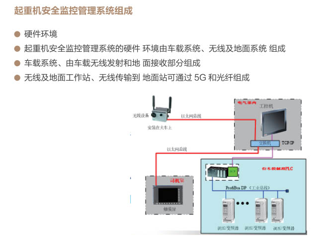 •-1、起重機狀態(tài)實時監(jiān)測:對事故易發(fā)設備和重點關鍵設備的運行情況進行實時監(jiān)測,同時 對采集的數(shù)據(jù)進行分析整理,并把現(xiàn)場的實際數(shù)據(jù)與相關的設備運行指標進行對比,超過偏 差限制時產(chǎn)生報警信息并存儲報警記錄。共享相關數(shù)據(jù),為及時發(fā)現(xiàn)和消除設備故障隱患提 供必要的數(shù)據(jù)支持。